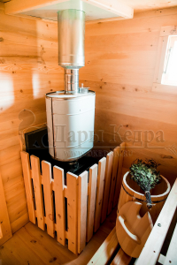 Забор из кедра вокруг печи, это в первую очередь безопасность от случайных ожогов, а также красивый эстетический вид.