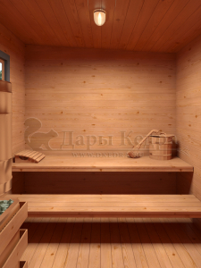Создаст приятную атмосферу с приглушённым светом, а также визуально расширит пространство парной.