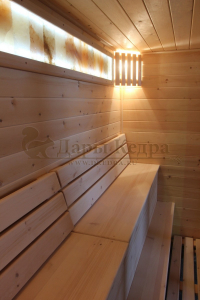 Для загородного центра здоровья заказывала такую сауну с соляной панелью. Изготовили не очень быстро, но меня предупредили, что декабрь-месяц тяжелый и могут быть задержки, итог превзошел ожидания: сауна отличная, практически без сучков, как я и просила. Аромат, конечно, потрясающий от сауны, когда она работает. В дальнейшем буду заказывать еще фитобочку и купель!